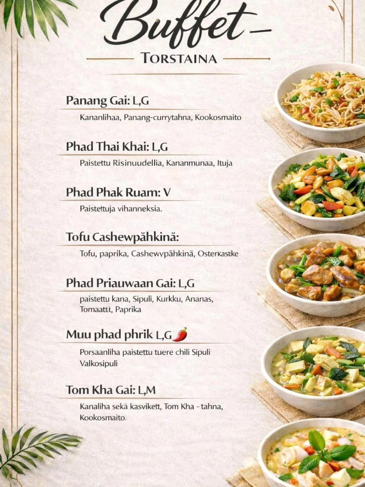 Ravintola yhdistää aidot thaimaalaiset maut, rennon tunnelman ja karaoke-illan iloisen ilmapiirin. Tarjolla on herkullista ruokaa, virkistäviä juomia ja mahdollisuus nauttia musiikista ystävien kanssa – täydellinen yhdistelmä unohtumatonta elämystä varten.